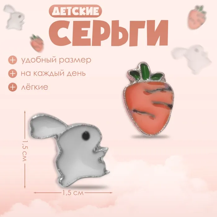 Серьги детские Выбражулька «Зайчик с морковкой», цветные в серебре — Характеристики