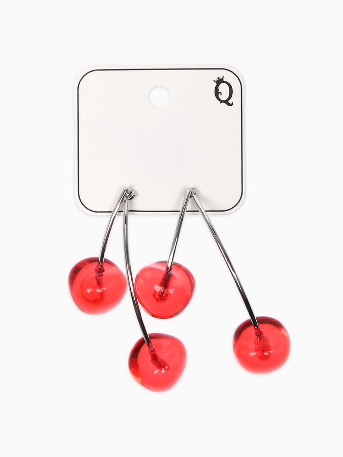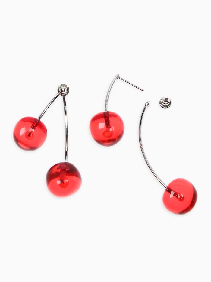 Красные ягоды на фоне серебра Женские сережки с красными черешнями – креативный и вкусный аксессуар, создающий ощущение свежего утреннего воздуха и летних садов. Элегантные плоды изображены в полном объёме, наделяют аксессуар характером и индивидуальным стилем.