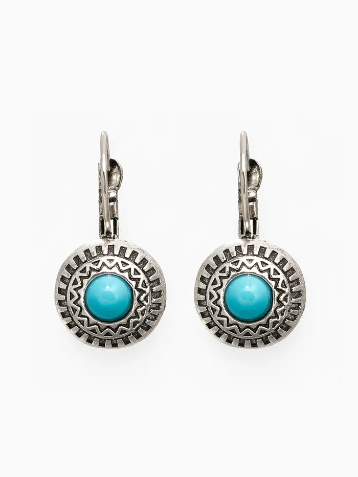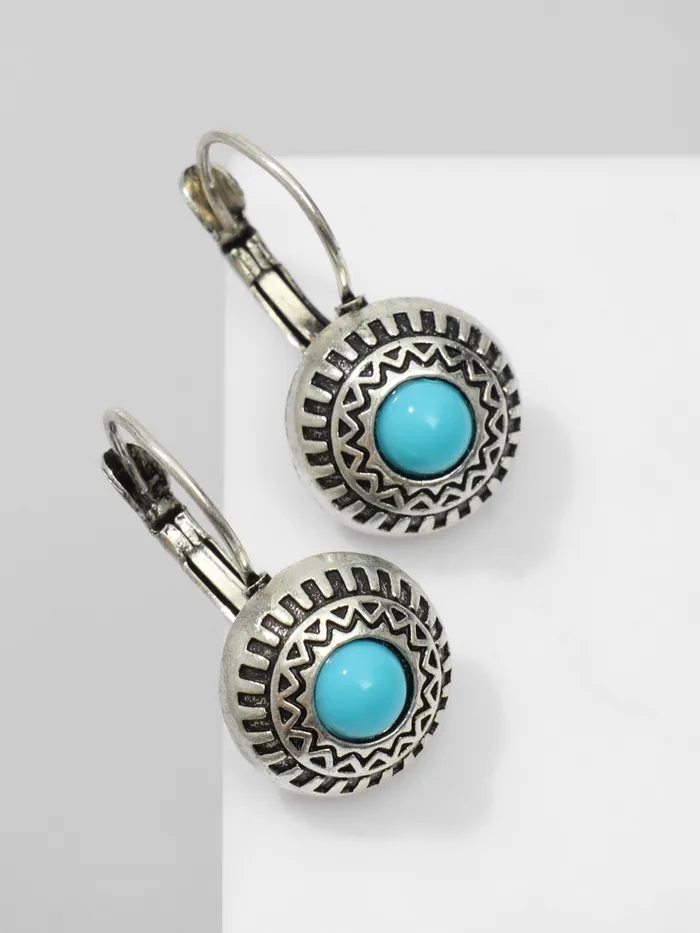 Серьги «Этника» круг в узорах, цвет голубой в чернёном серебре — Характеристики
