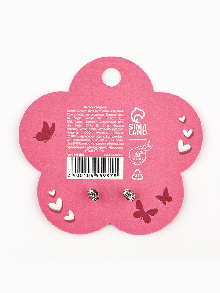 Серьги гвоздики Cute girl, 1 пара — Характеристики