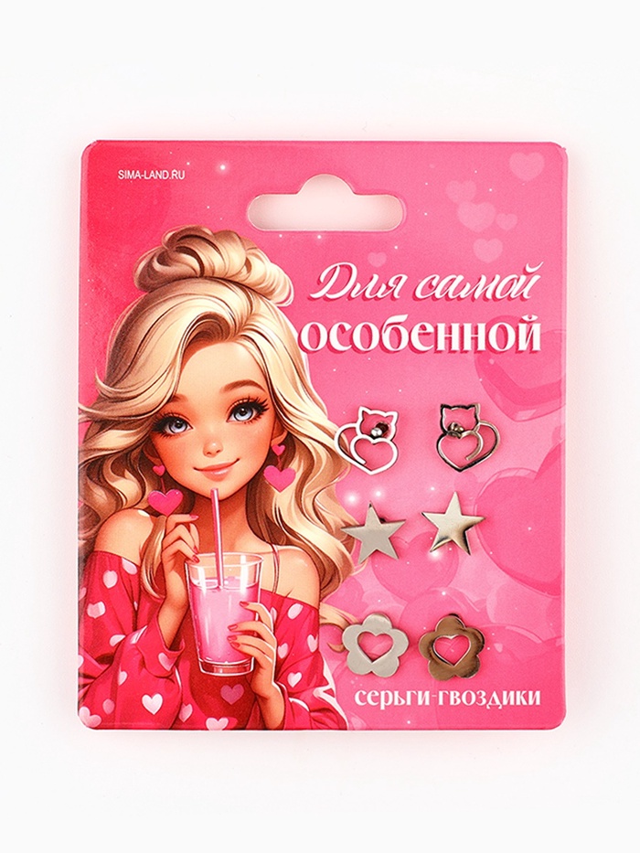 Серьги гвоздики «Для самой особенной», 3 пары — Характеристики