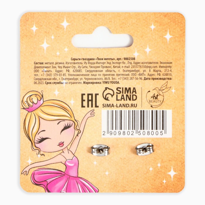 Серьги гвоздики «Твои мечты» 6 х 6,5 см — Характеристики
