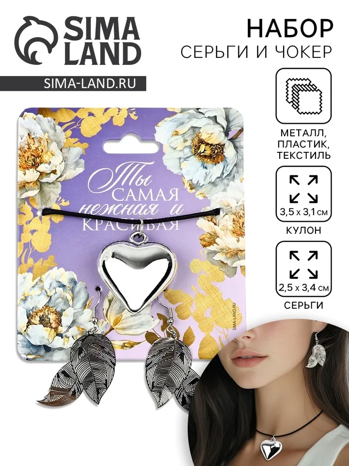 Серьги и чокер «Ты самая нежная и красивая», 9×10 см — Характеристики