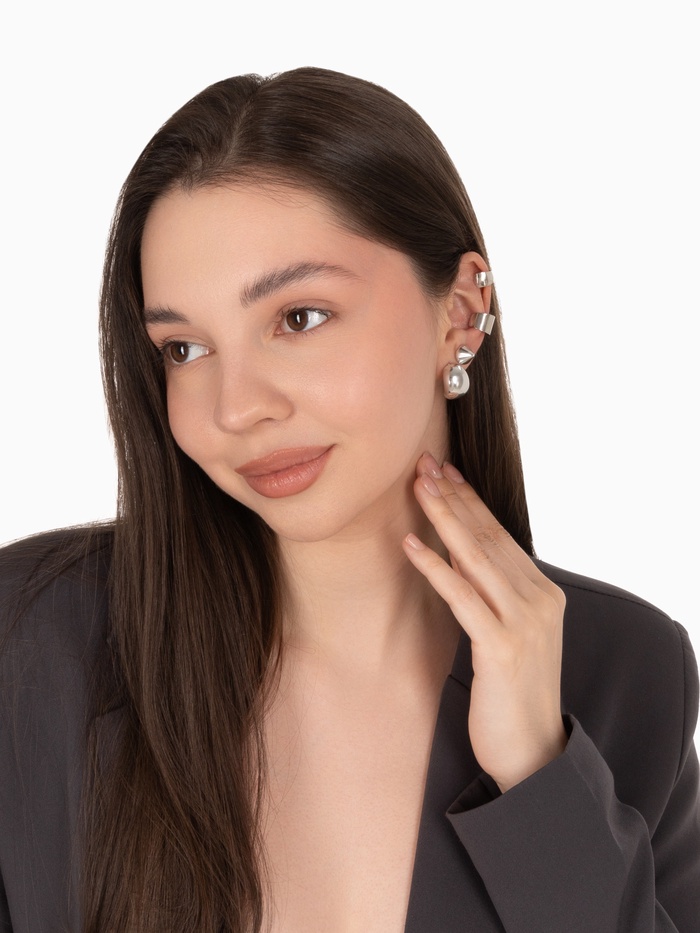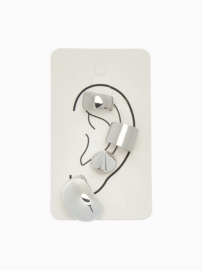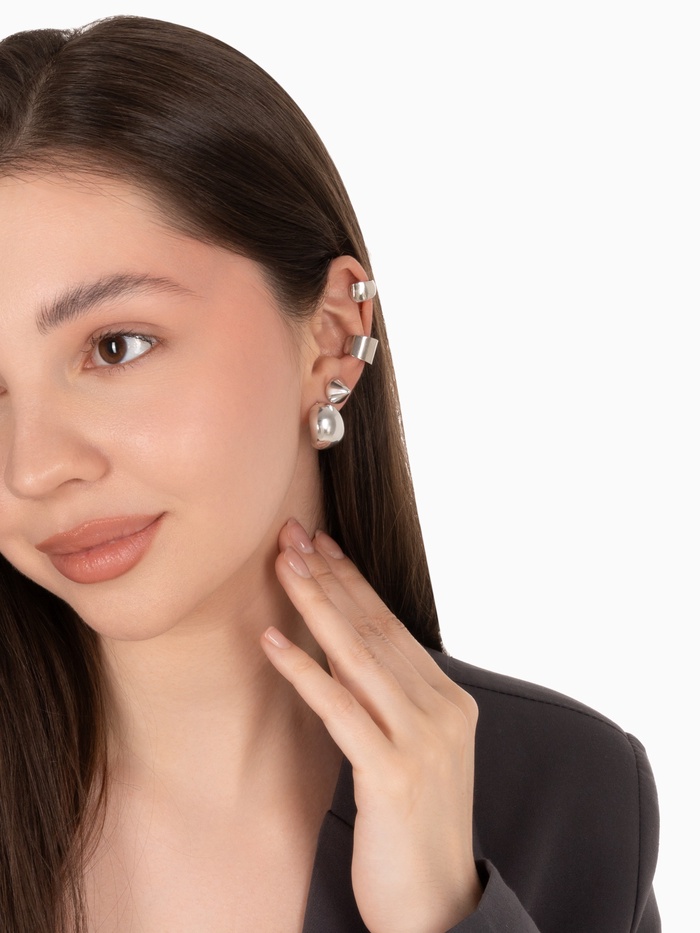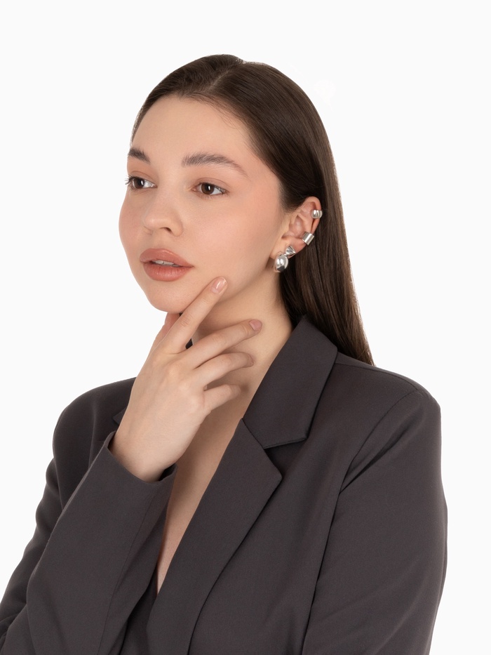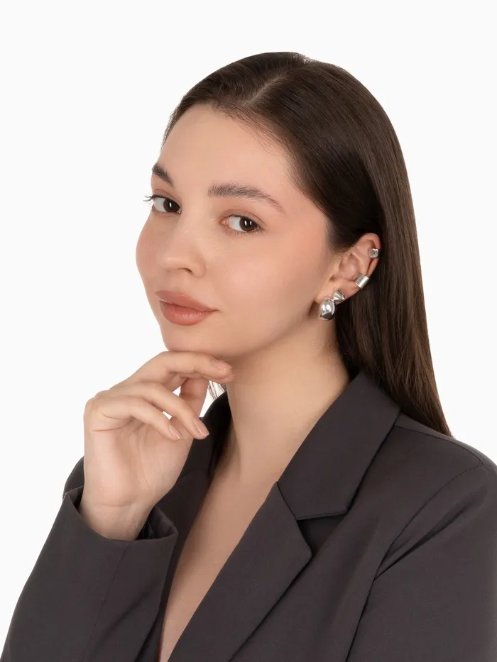 Познакомьтесь с набором серьг и каффов «Фигуры», который воплощает в себе утонченность и современность в каждом элементе. Искушенный серебристый цвет и обтекаемые формы делают эти аксессуары настоящей находкой для женщин, которые ценят стиль и оригинальность.