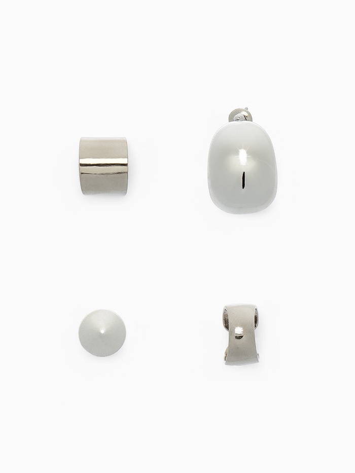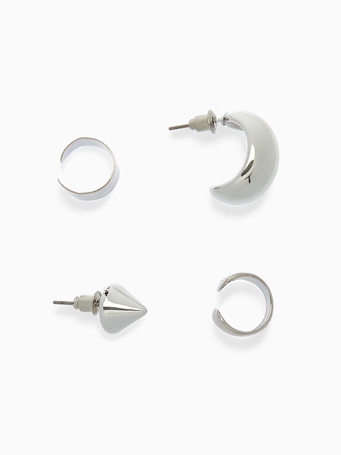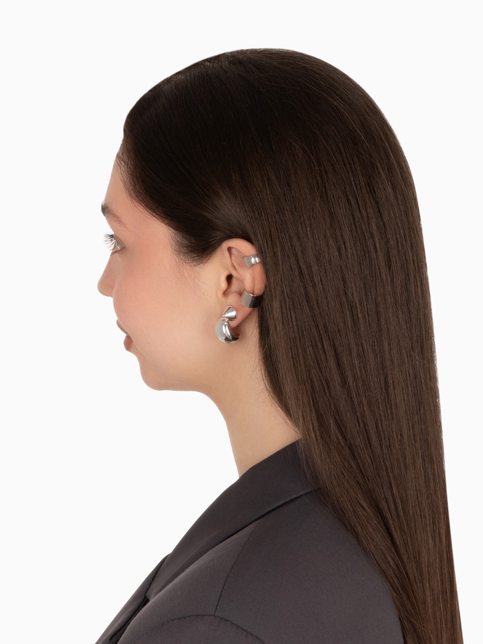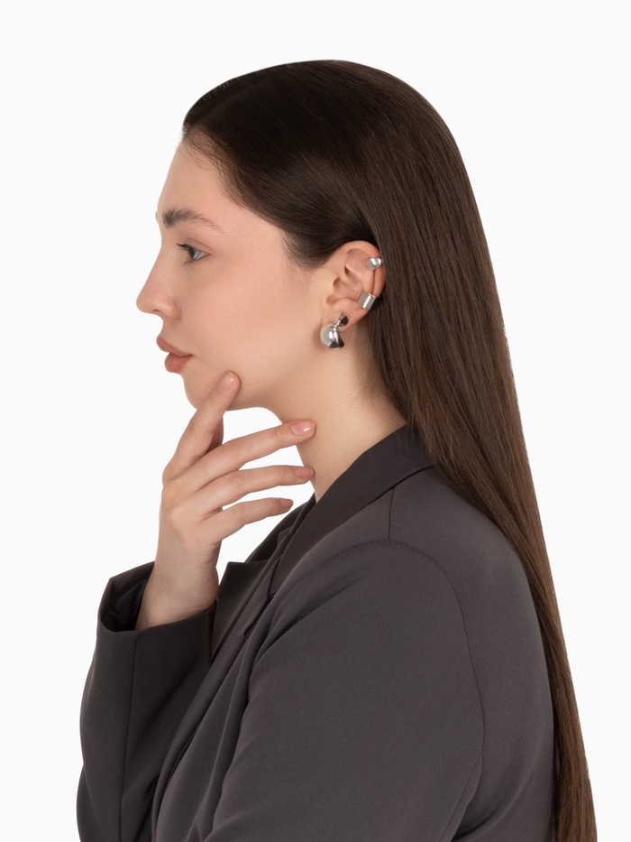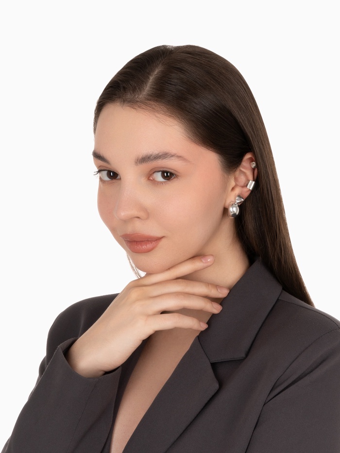 Познакомьтесь с набором серьг и каффов «Фигуры», который воплощает в себе утонченность и современность в каждом элементе. Искушенный серебристый цвет и обтекаемые формы делают эти аксессуары настоящей находкой для женщин, которые ценят стиль и оригинальность.