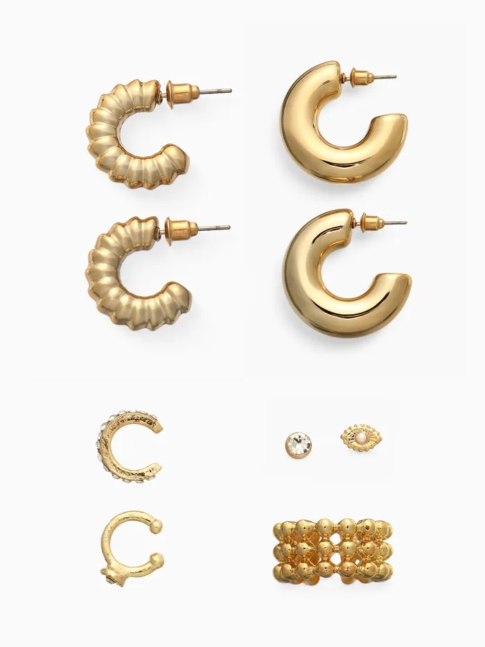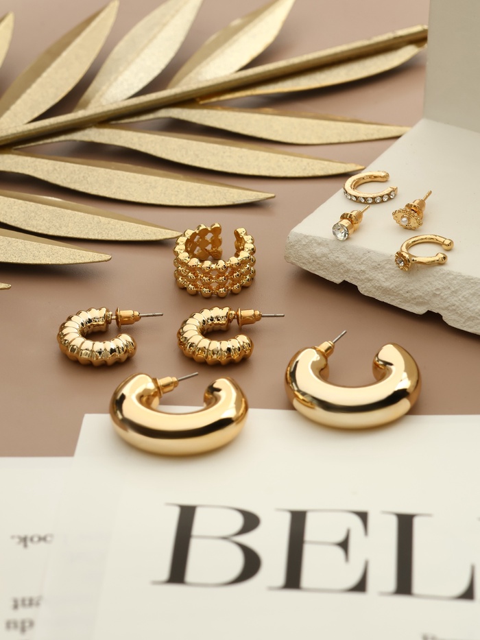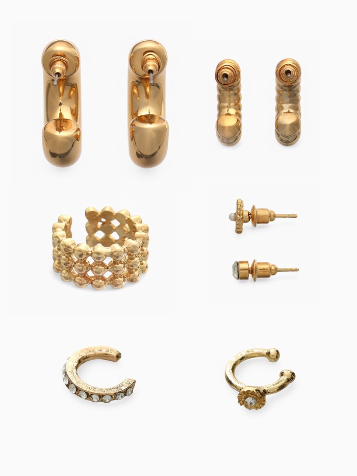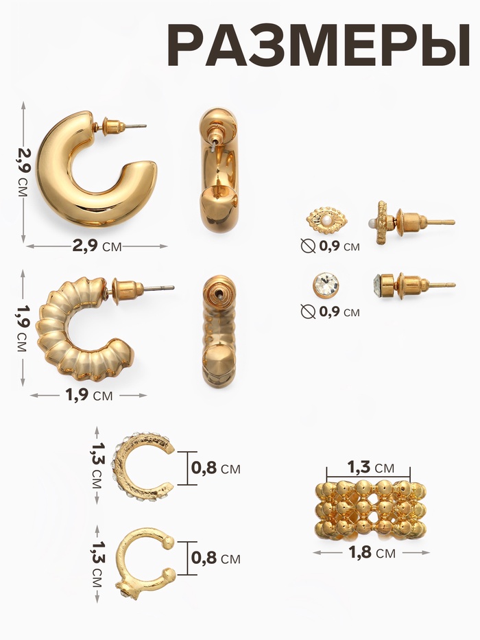 Серьги и каффы «Бублик», набор 9 шт. цвет золото — Характеристики