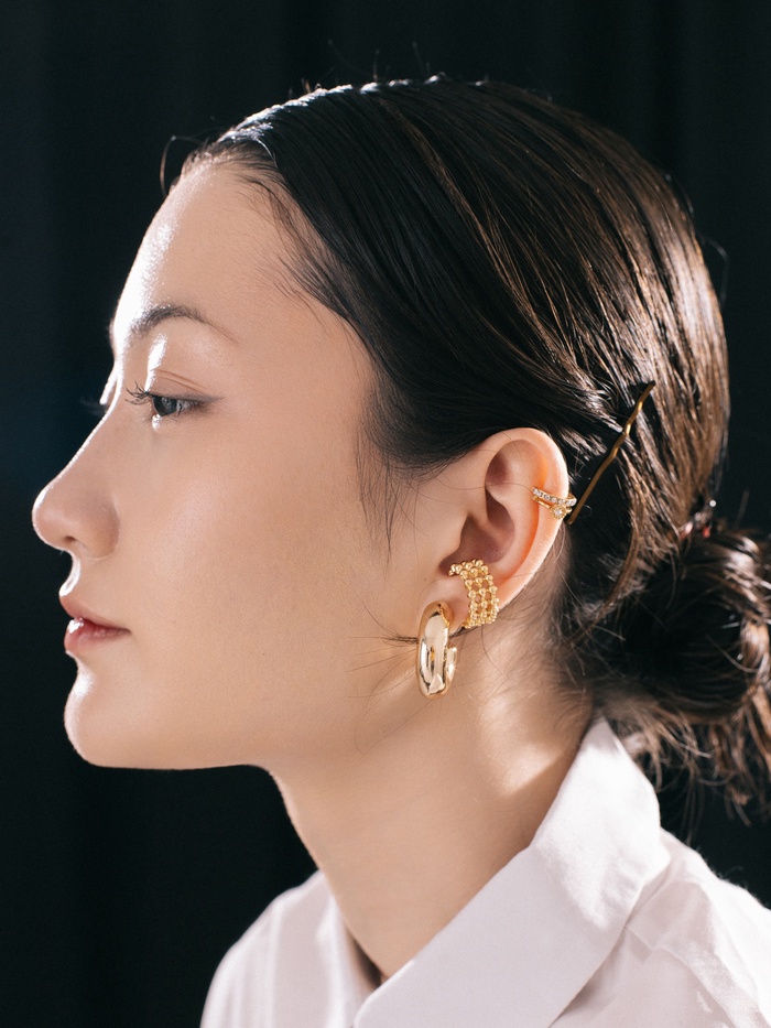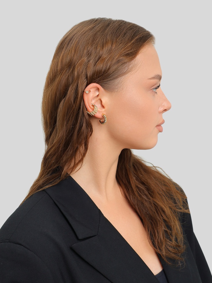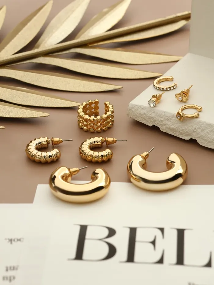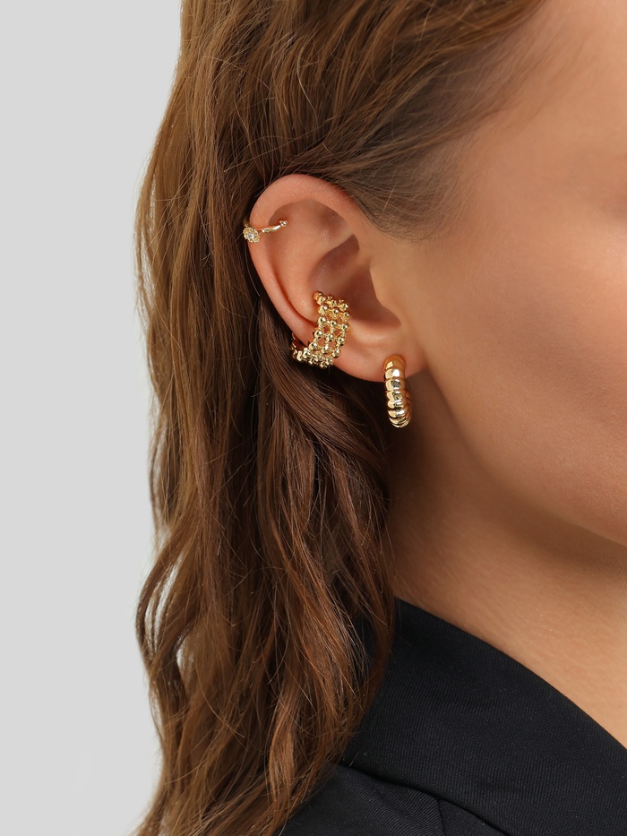 Позвольте своему стилю заиграть новыми красками с вдохновляющим набором серёг и каффов, который прекрасно дополнит ваш образ и станет идеальным акцентом в любом наряде. Восхитительный золотистый цвет этих украшений придаст вашему внешнему виду яркость и элегантность, даря вам уверенность и обаяние.