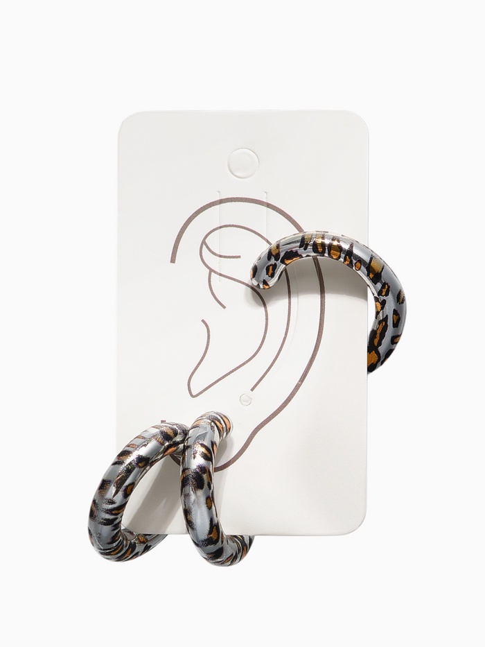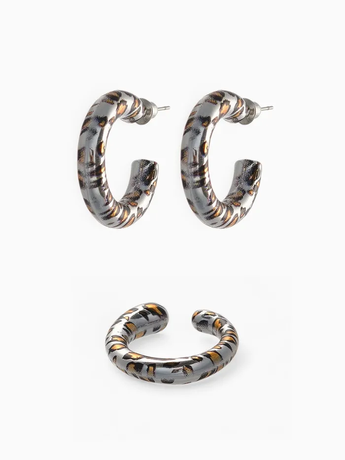Серебристый комплект украшений с леопардовым мотивом объединяет в себе современный стиль и оригинальность. В набор входят серьги-гвоздики с застёжкой пусет и каффы без прокола, выполненные из лёгкого пластика с изящным серебристым покрытием. Такой дуэт позволяет создать эффектный образ без лишних усилий и дискомфорта.
