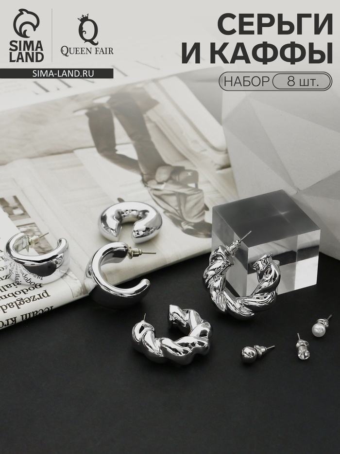 Серьги и каффы QF «Леопард», набор, жгутик, цвет серебро — Характеристики