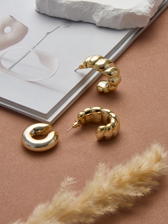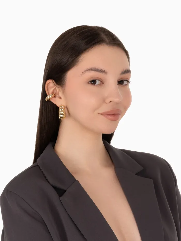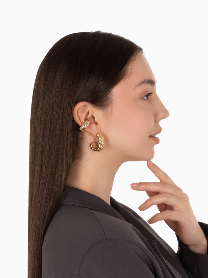Набор серег и каффов «Косичка» — это не просто бижутерия, а настоящий акцент в вашем образе. Придайте своему стилю изысканность и шарм, подчеркнув свою уникальность с помощью этих прекрасных украшений.