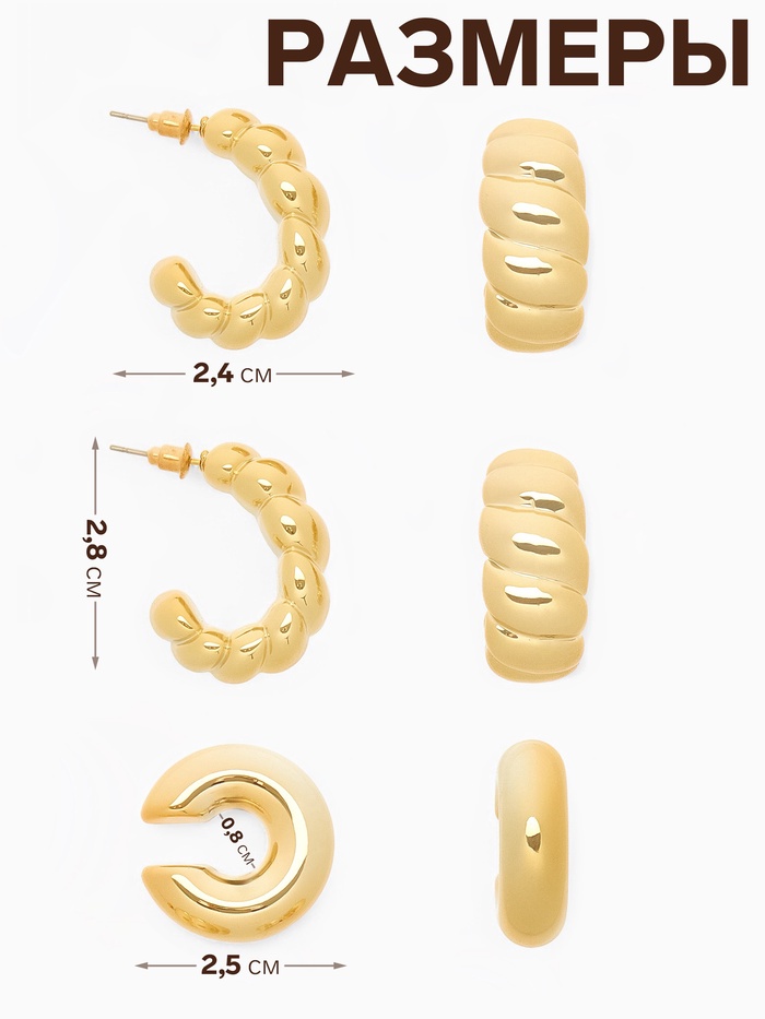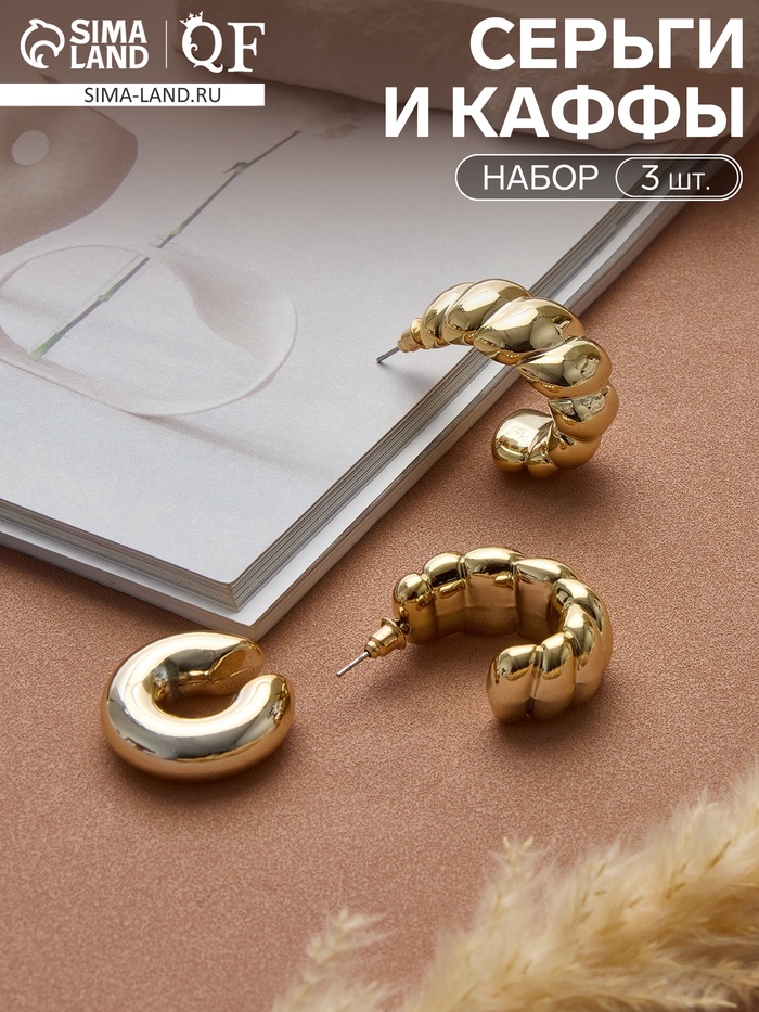 Серьги и каффы QF «Плетённый бублик», набор, цвет золото — Характеристики