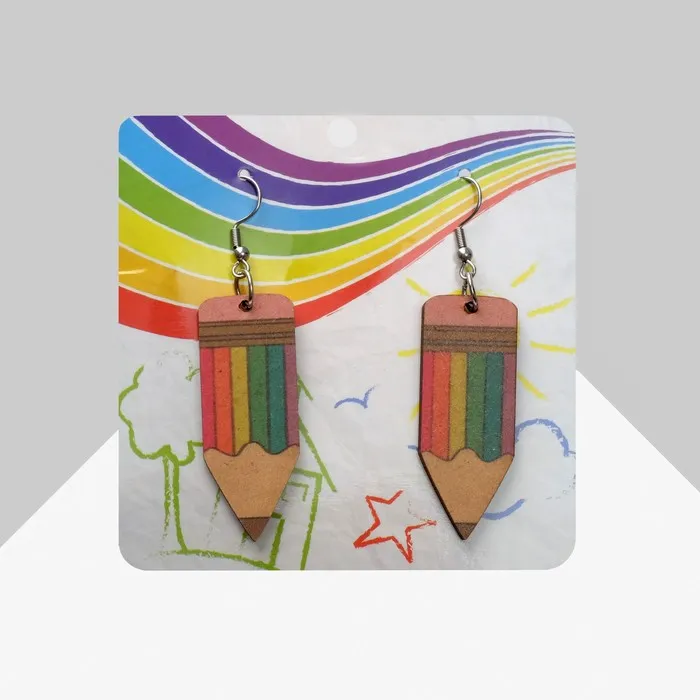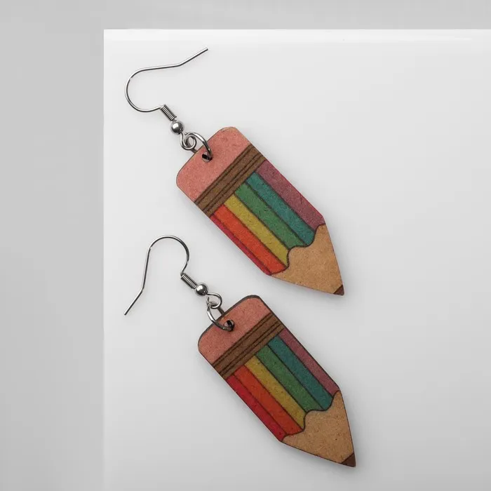 Серьги из дерева «Школа» карандашики, цветные в серебре — Характеристики