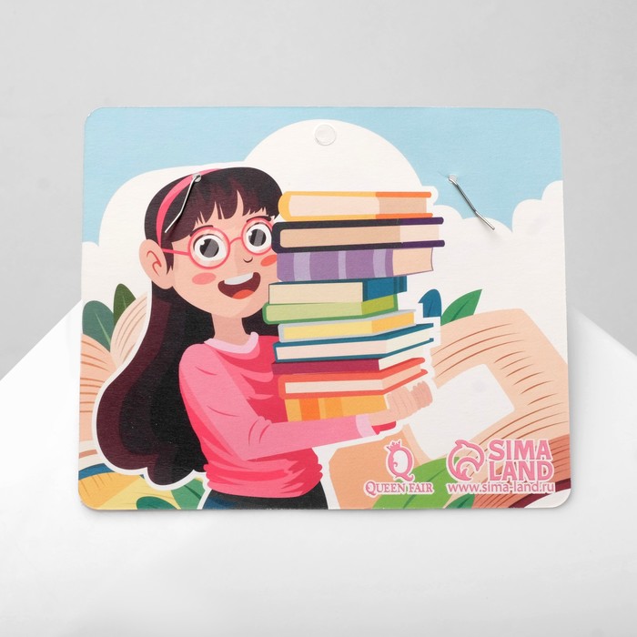 - Выразительный дизайн: яркие цветовые акценты и тематический образ книг отражают любовь к учёбе и творчеству.