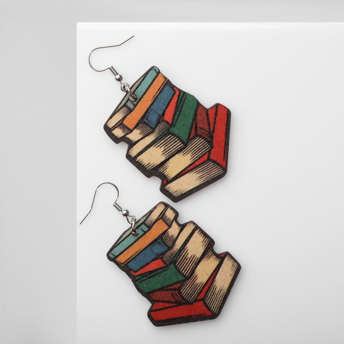 Небольшие деревянные серьги, воплотившие в себе яркий образ кипы книг, созданы для юных любительниц знаний и творчества. Их разноцветное исполнение в серебристой фурнитуре добавляет каплю чарующего многообразия и лёгкости в каждодневный образ, подчёркивая индивидуальность и увлечённость ученицы или школьницы.