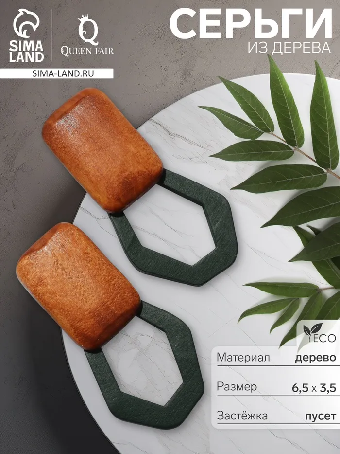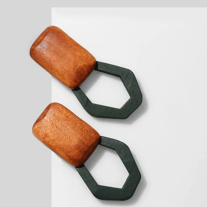 Серьги из дерева «Ваканда» неровный овал, цвет зелёно-коричневый — Характеристики
