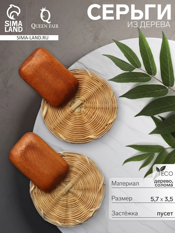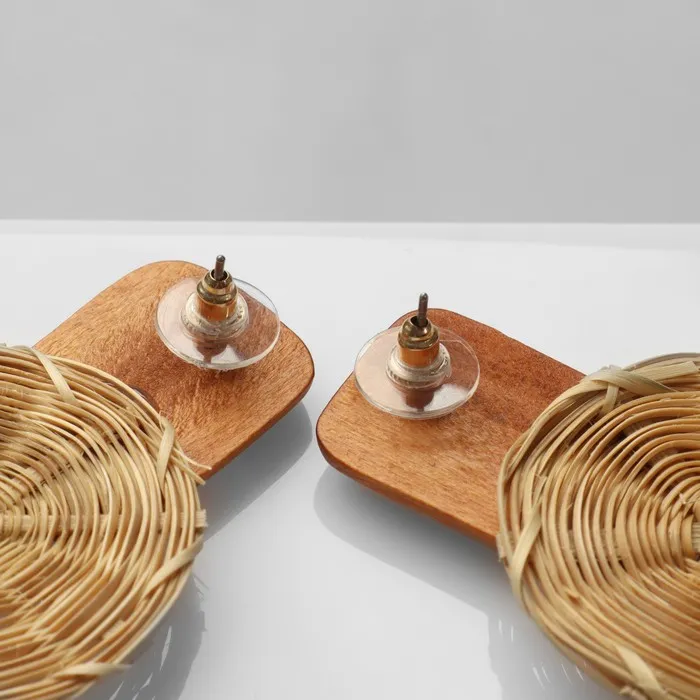 Серьги из дерева «Ваканда» стиль, плетёный диск, цвет бежево-коричневый — Характеристики