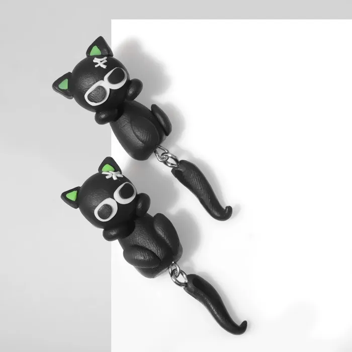 Серьги из полимерной глины «Котики», цвет чёрный — Характеристики