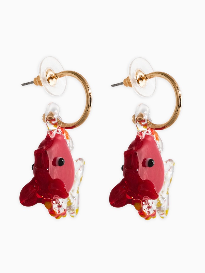 Серьги из стекла "Море", рыба, цвет красный в золоте — Характеристики