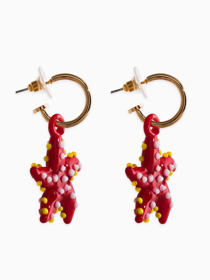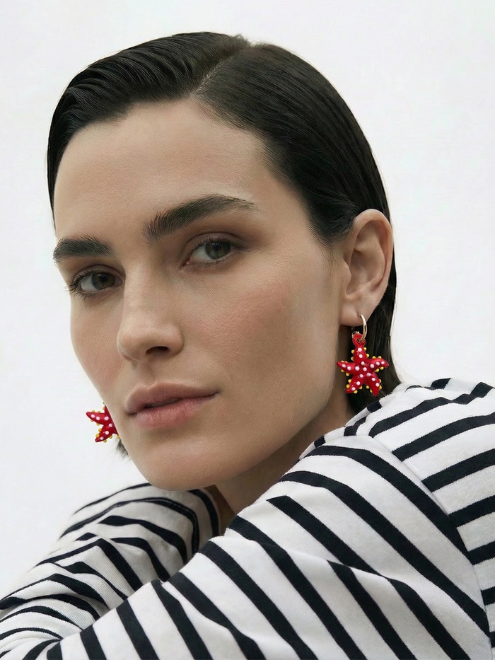 Серьги из стекла "Море", звезда, цвет красный в золоте — Характеристики