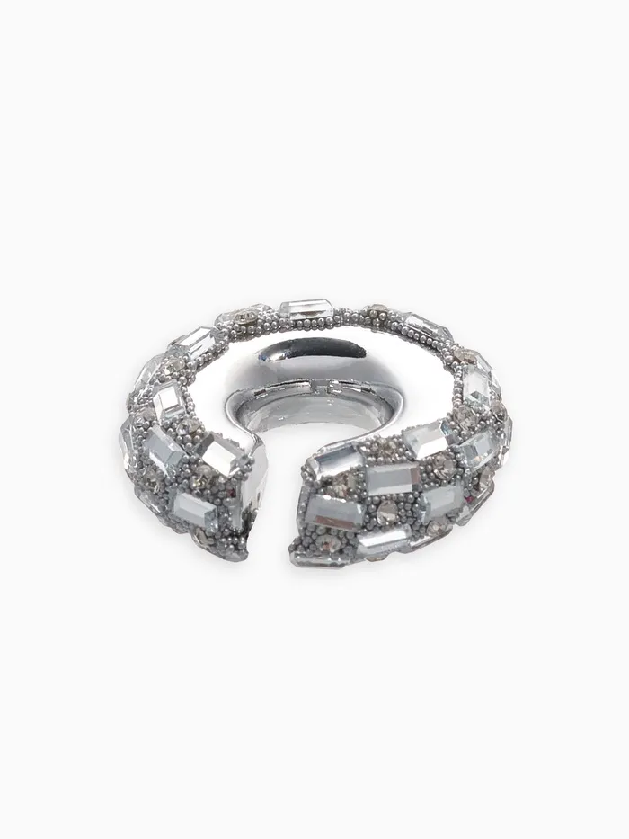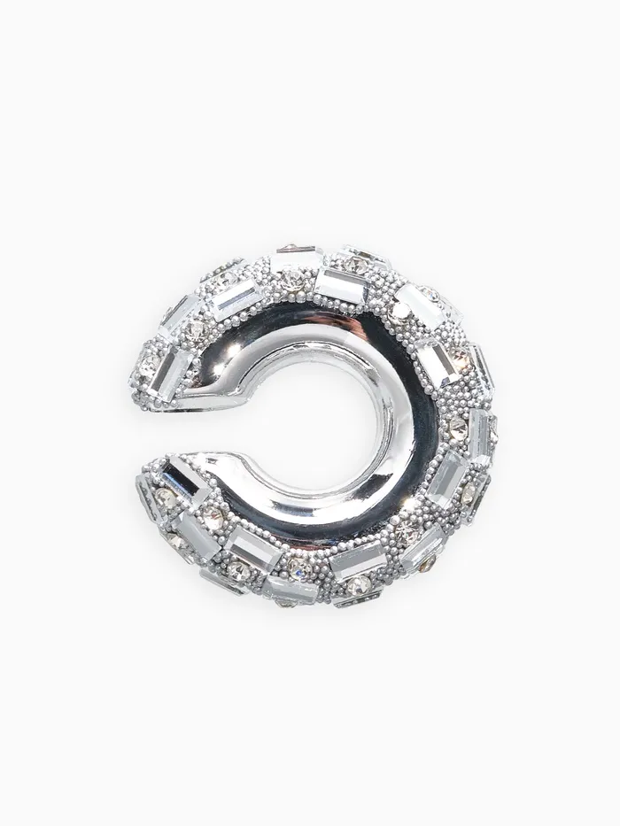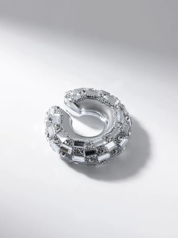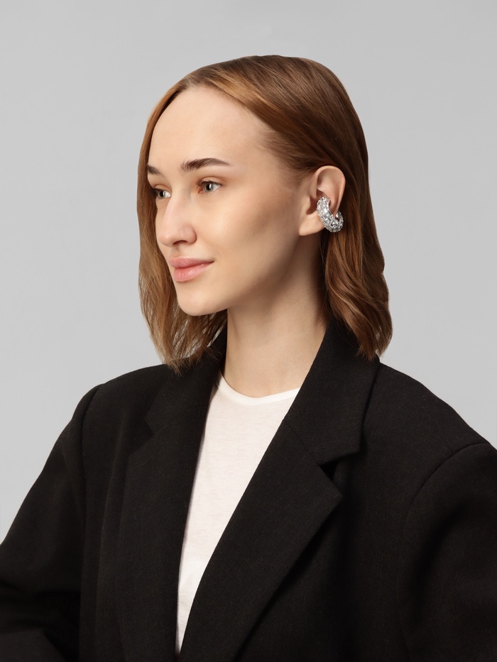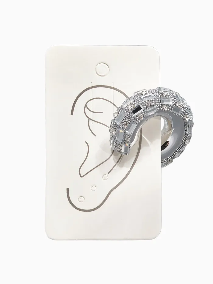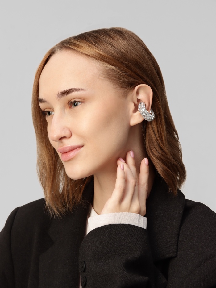 Серьги каффы «Бублик», крупные стразы, белые в серебре — Характеристики