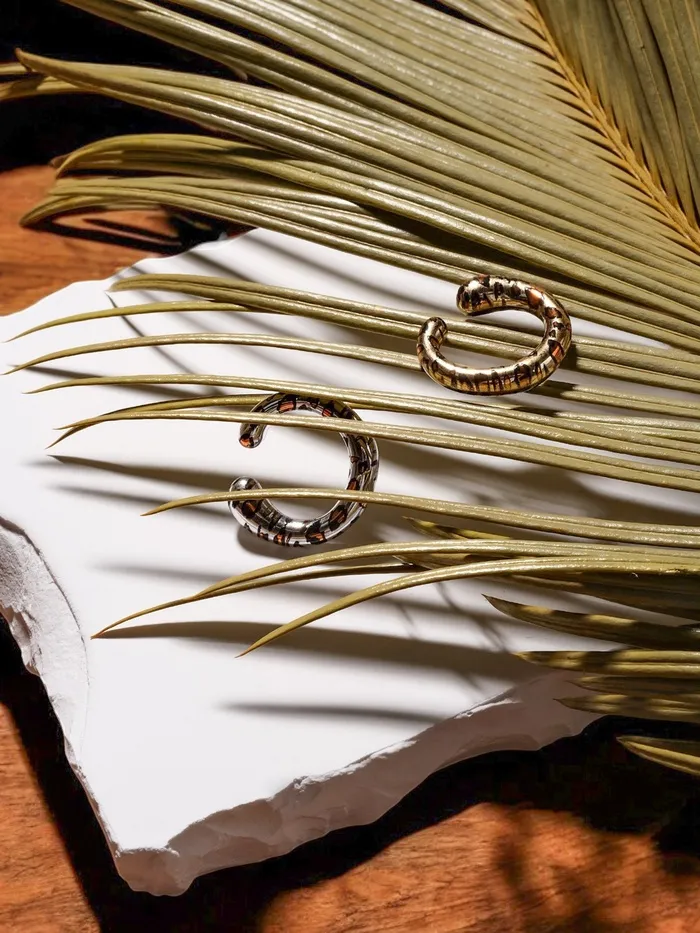 Набор из двух разноцветных каффов в стиле леопарда — необычное украшение для женщин, которые предпочитают выразительные детали без прокола. Компактная длина 2,7 см обеспечивает удобство и лёгкость в носке, а сочетание золотистых и серебристых оттенков добавляет изящества и контраста.