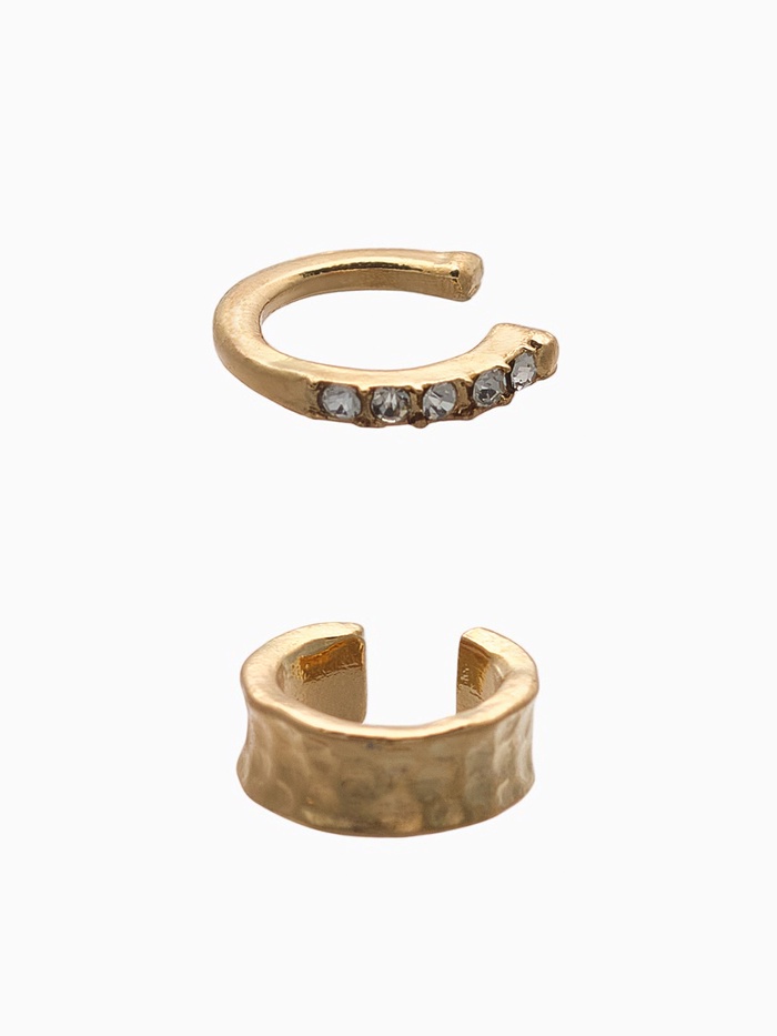 Серьги «Каффы» набор 2 шт., мятый со стразами, белые в золоте — Характеристики