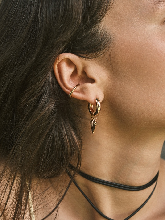 Такая конструкция без прокола обеспечивает лёгкость и безопасность ношения, позволяя подчеркнуть индивидуальность без необходимости традиционных пирсингов. Золотистый оттенок придаёт образу теплоту и благородство, а отсутствие вставок делает аксессуары универсальными и легко сочетаемыми с любыми стилями.