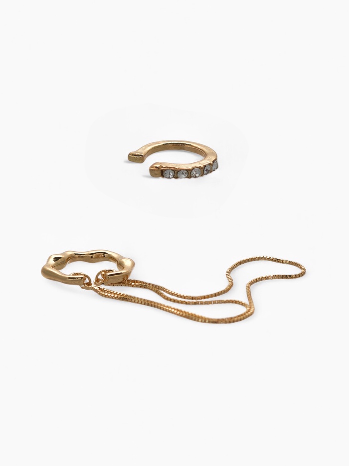 Особенность этих каффов — отсутствие необходимости прокола, что гарантирует комфорт и безопасность при ношении. Лёгкий и прочный металлический материал с золотистым покрытием обеспечивает долговечность и стойкость к износу, сохраняя блеск даже при активном использовании.