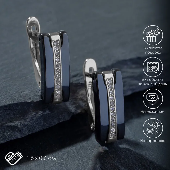 Серьги керамика «Дорожка» прямая, чёрные в серебре — Характеристики