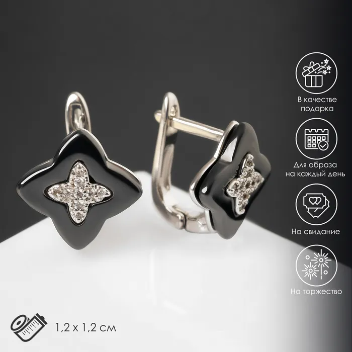 Серьги керамика «Цветок», чёрно-белые в серебре — Характеристики