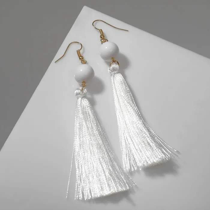 Серьги «Кисти» агата, цвет белый в золоте, L кисти 6,5 см — Характеристики