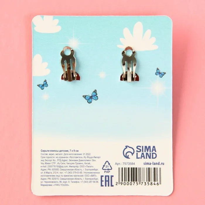 Клипсы на уши имеют мягкое крепление, что позволяет носить их долгое время без боли на мочки ушей ребенка, будь то на прогулке, праздничном мероприятии или походе в детский сад на утренник.