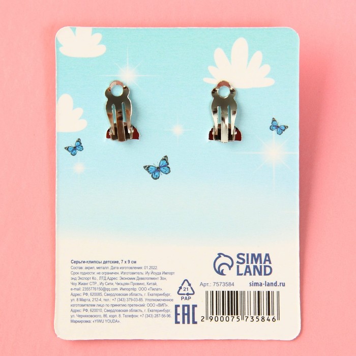 Серьги-клипсы детские «Мечтай»