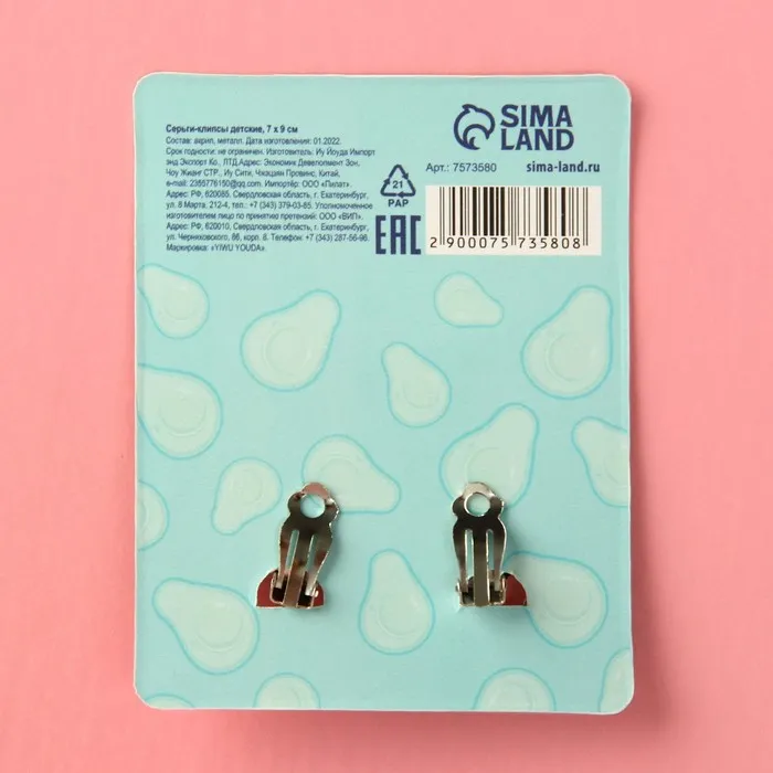 Клипсы на уши имеют мягкое крепление, что позволяет носить их долгое время без боли на мочки ушей ребенка, будь то на прогулке, праздничном мероприятии или походе в детский сад на утренник.