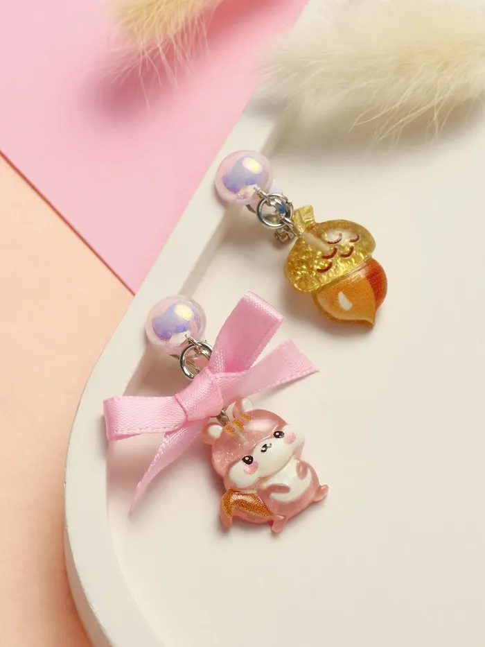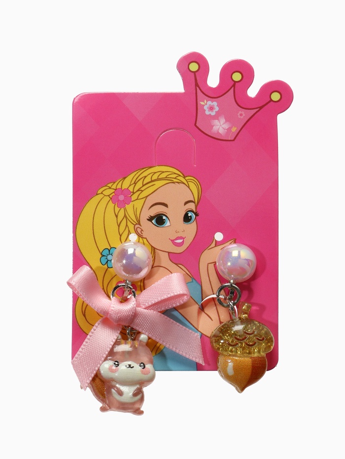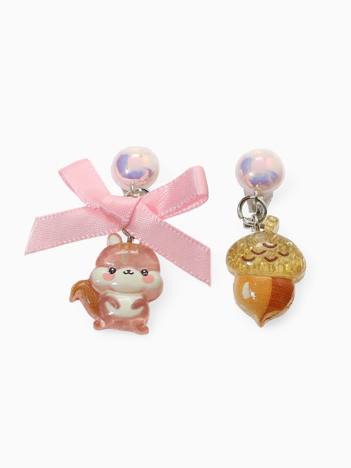 Серьги-клипсы детские «Выбражулька» белочка с бантом, жёлудь с жемчужиной, цветные — Характеристики
