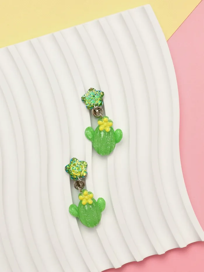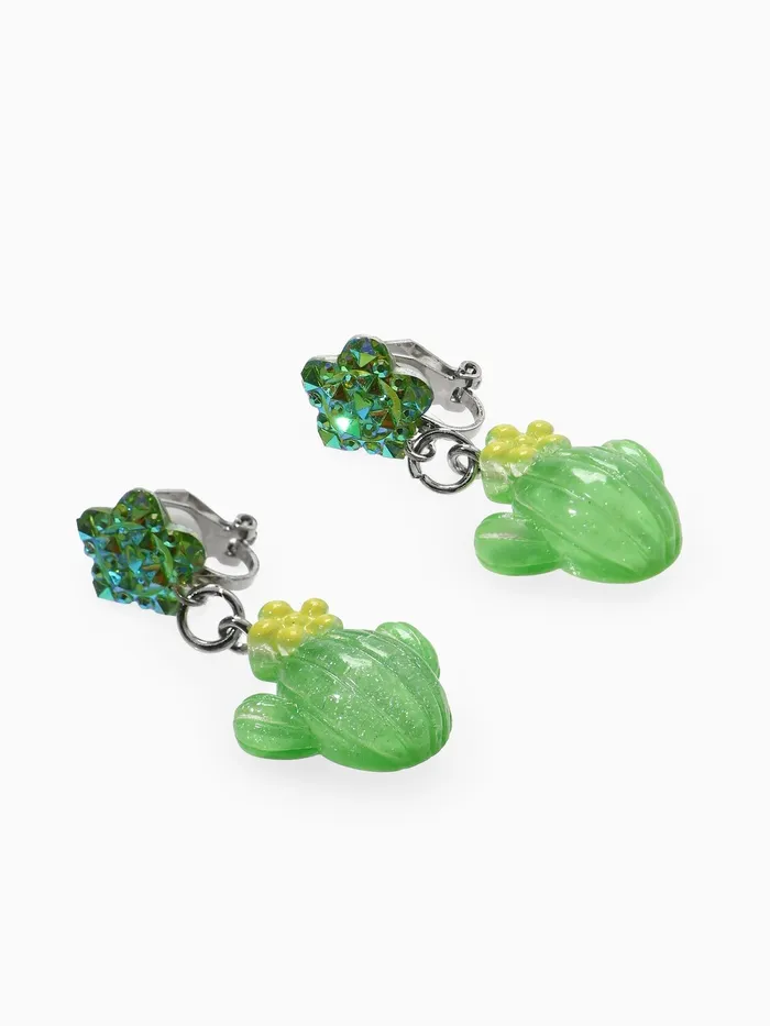 Серьги-клипсы детские "Выбражулька" в виде кактуса с звездой и кристаллом, цвет зеленый — это яркое и веселое украшение для маленьких модниц. Эти стильные серьги-клипсы с оригинальным дизайном, выполненные в виде кактуса с декоративной звездой и кристаллом, добавят яркости и индивидуальности любому наряду.