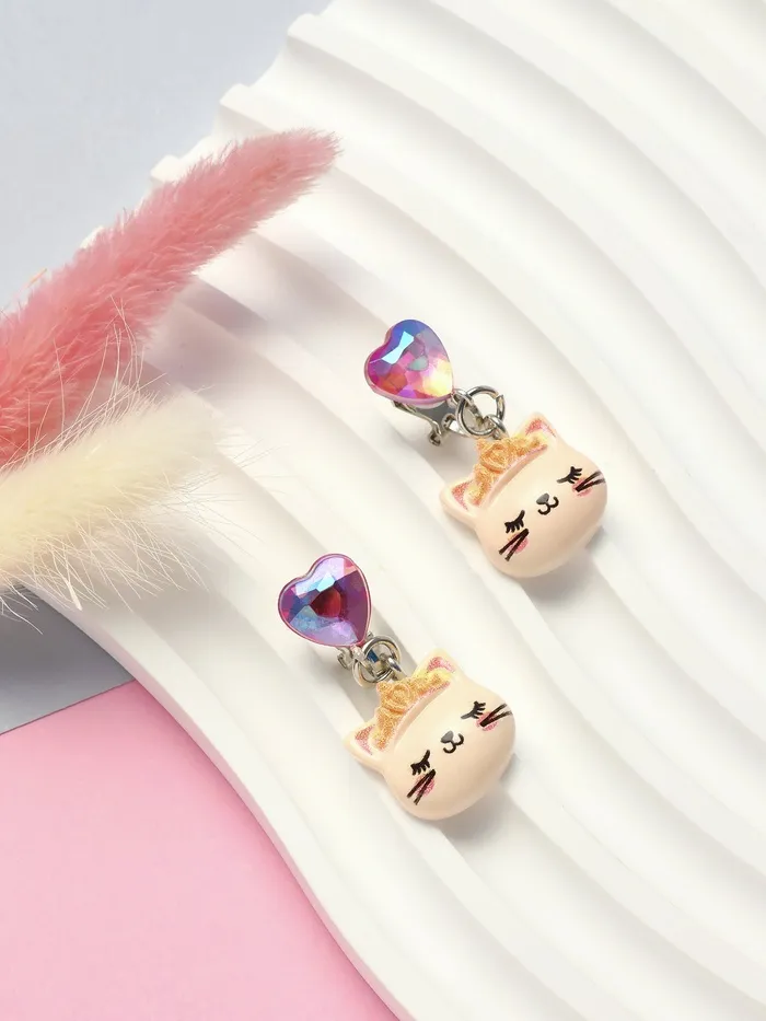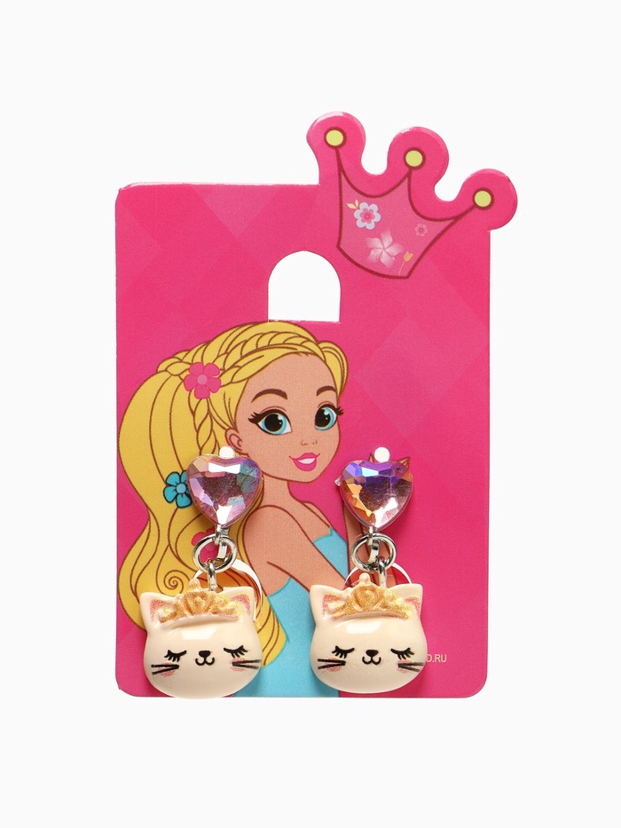 Серьги-клипсы детские «Выбражулька» кот с сердцем кристалл, цветные — Характеристики