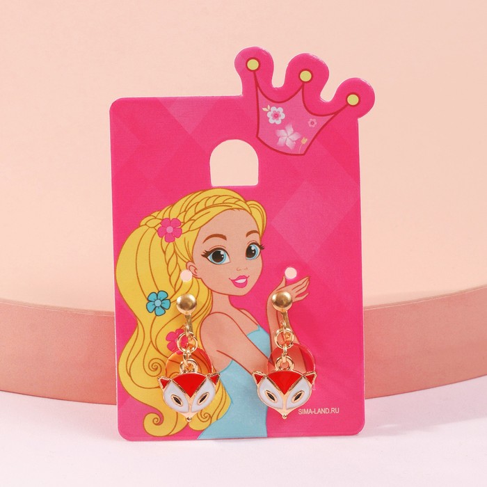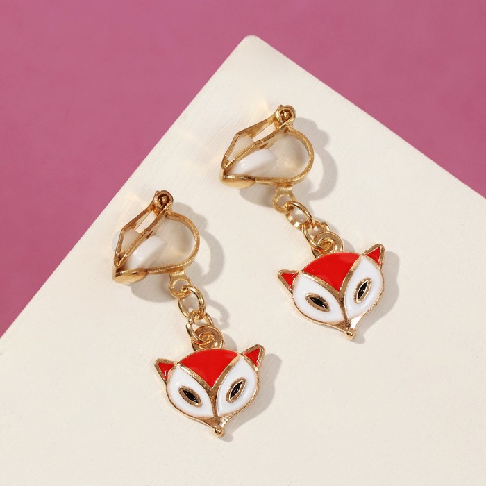 Серьги-клипсы детские Выбражулька «Лисичка», бело-оранжевые в золоте