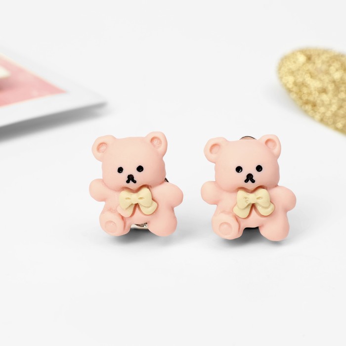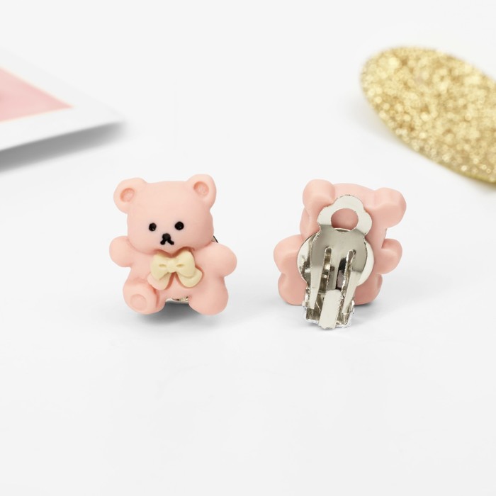 Серьги-клипсы детские «Выбражулька» мишка с бантиком, розовые