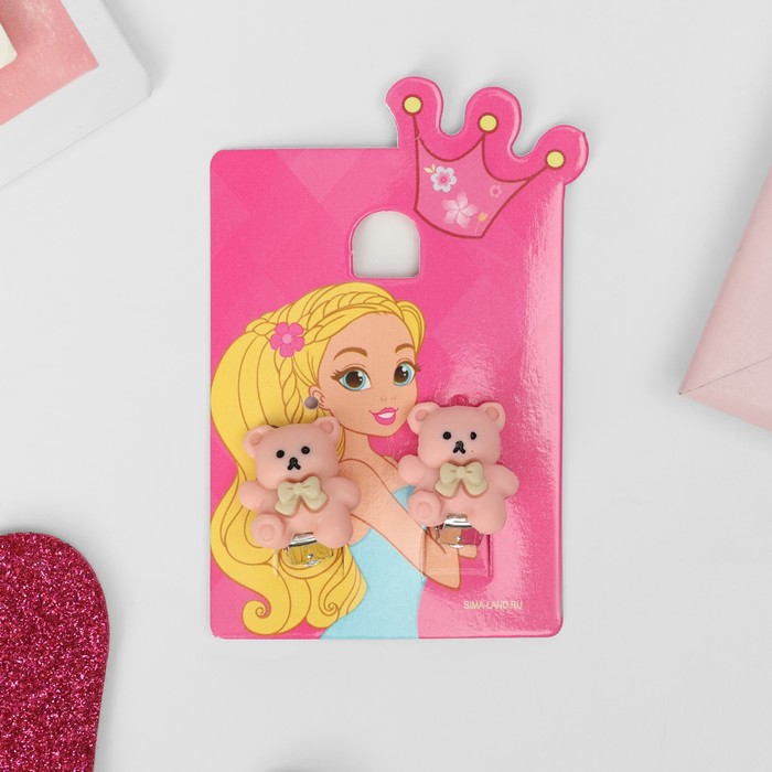 Серьги-клипсы детские «Выбражулька» мишка с бантиком, розовые — Характеристики