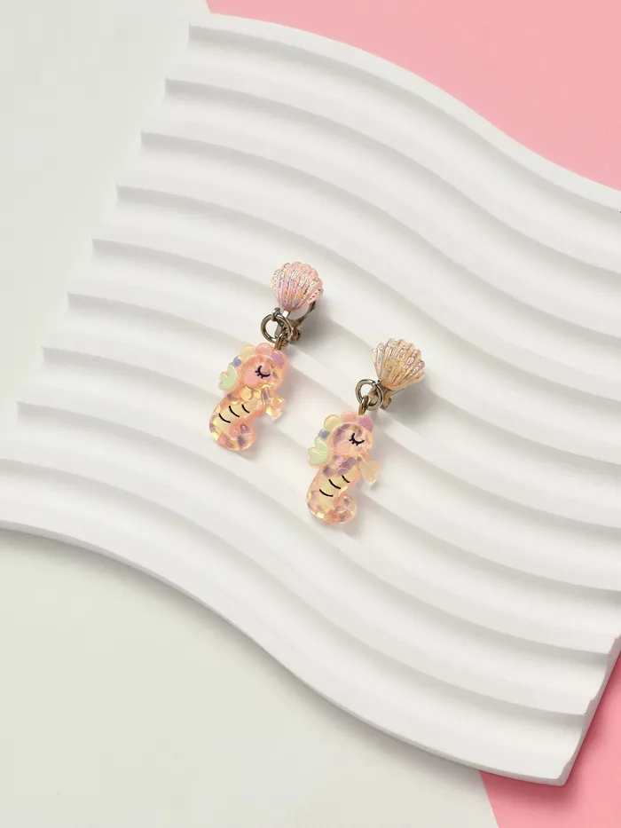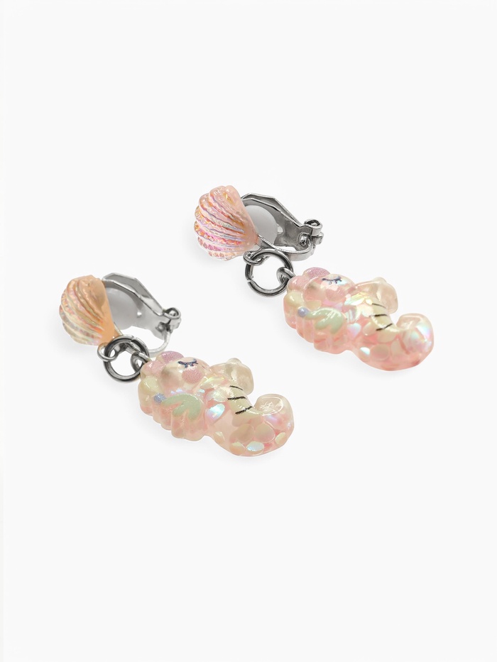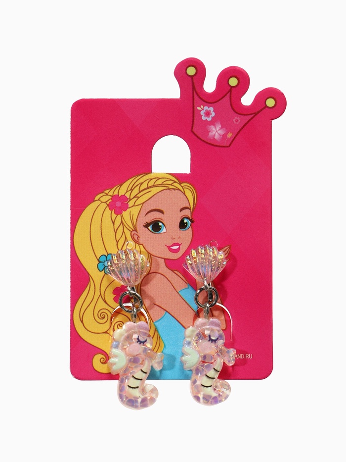 Серьги-клипсы детские "Выбражулька" морской коньек с ракушкой перламутр — это отличный подарок для девочек, который добавит радости и подчеркнет индивидуальность маленькой модницы.