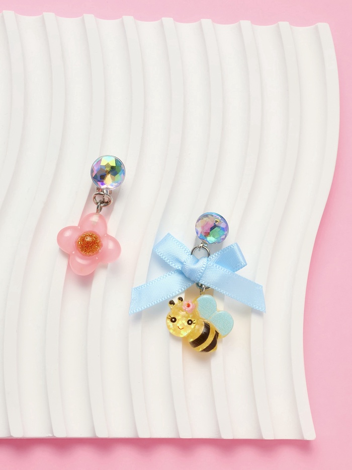 Серьги-клипсы детские «Выбражулька» пчела с бантом, цветок с кругом кристалл, цветные — Характеристики