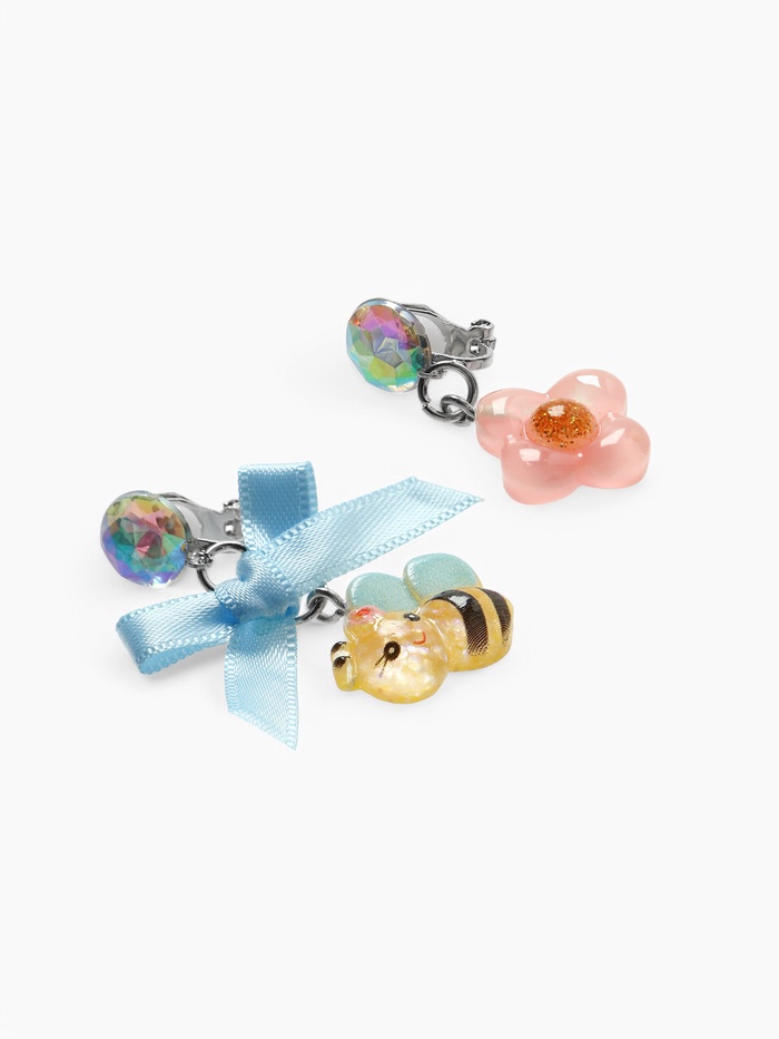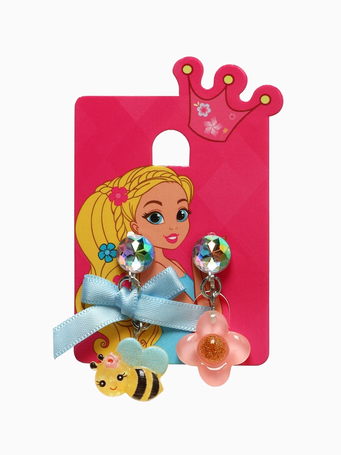 Серьги-клипсы детские «Выбражулька» пчела с бантом, цветок с кругом кристалл, цветные