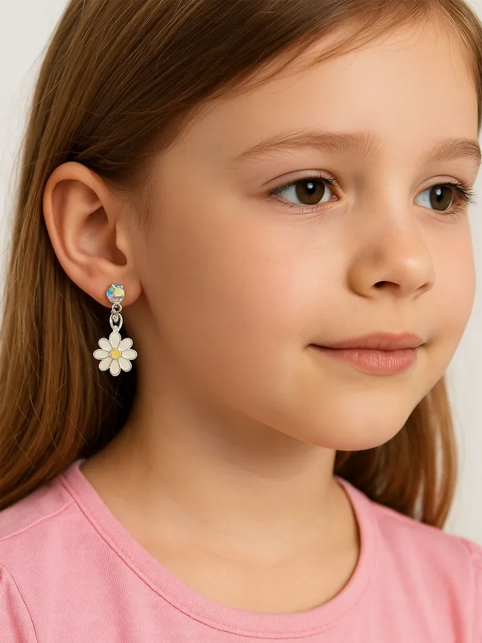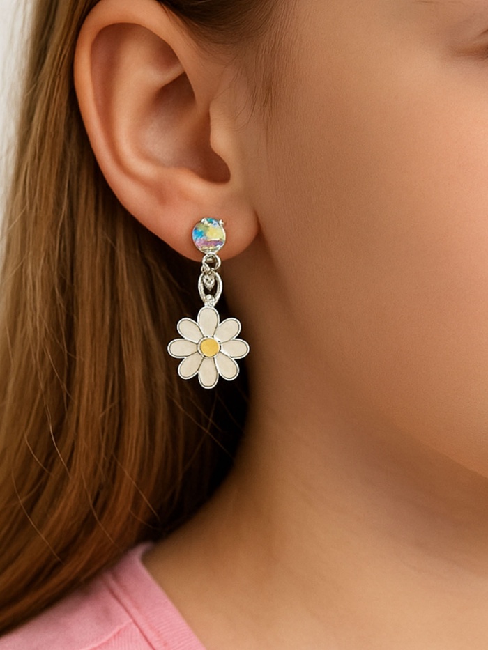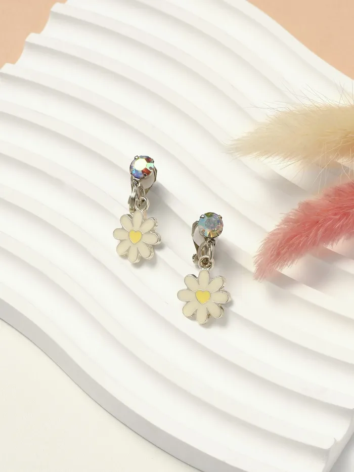 Погрузите свою маленькую модницу в мир ярких эмоций с очаровательными клипсами в форме ромашек! Эти серьги с кристаллом и бело-жёлтым цветом добавят веселья и радости в каждый наряд, позволяя вашей девочке чувствовать себя настоящей звездой.