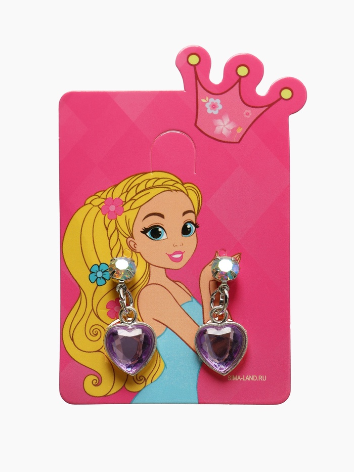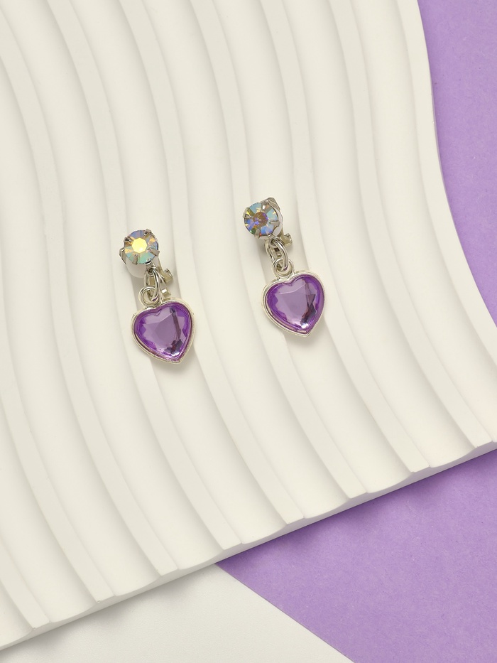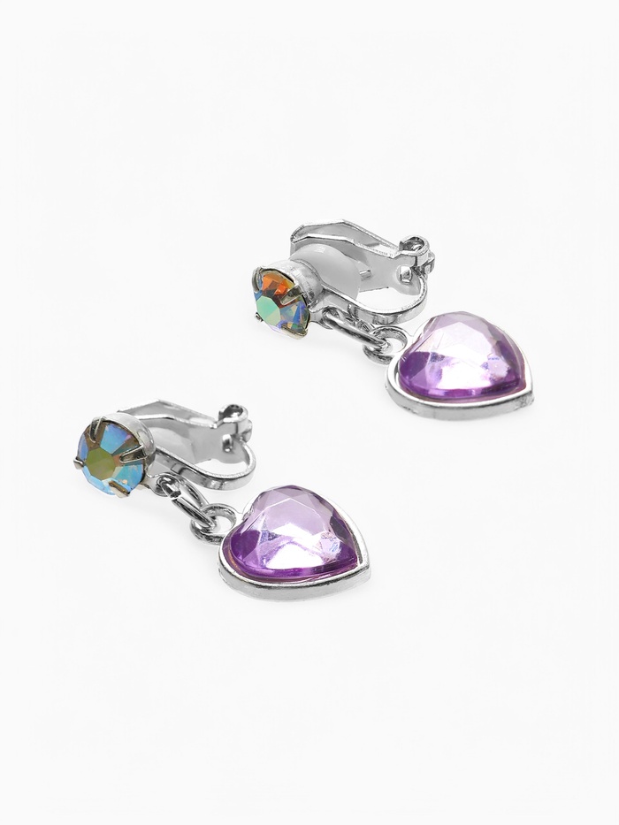 Серьги-клипсы детские «Выбражулька» сердце кристалл, сиренево-радужные — Характеристики