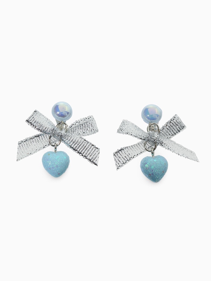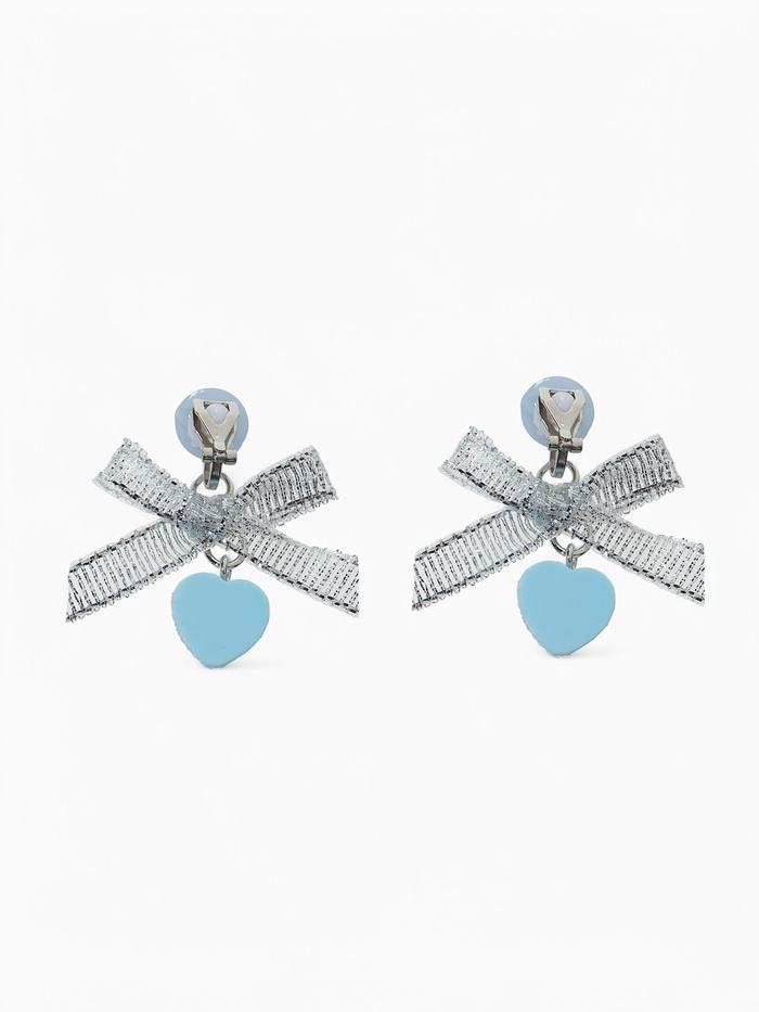 Серьги-клипсы детские "Выбражулька" в виде сердца с бантом и кругом кристаллом, цвет голубо-серебристый — это изысканное и стильное украшение для маленьких модниц. Эти серьги с милым дизайном в виде сердца, украшенного бантом и сверкающим кристаллом, придают образу нежность и элегантность.