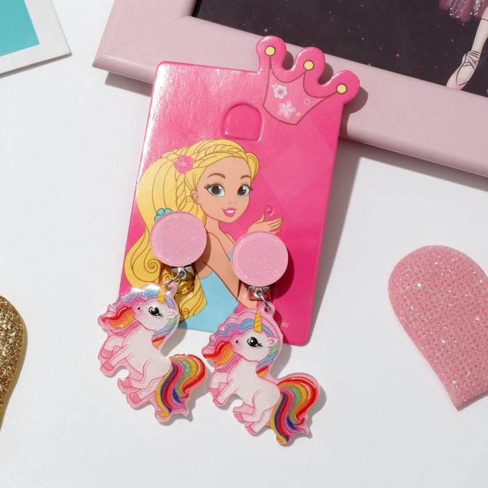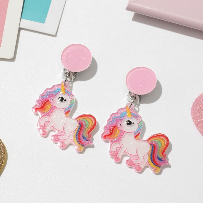 Серьги клипсы детские Выбражулька «Сказка яркого единорога», цветные