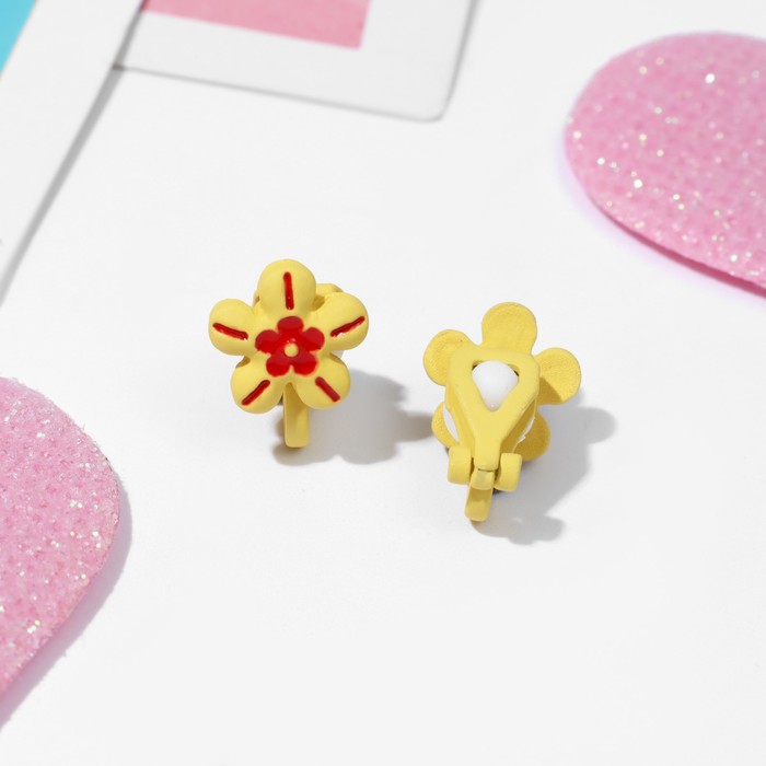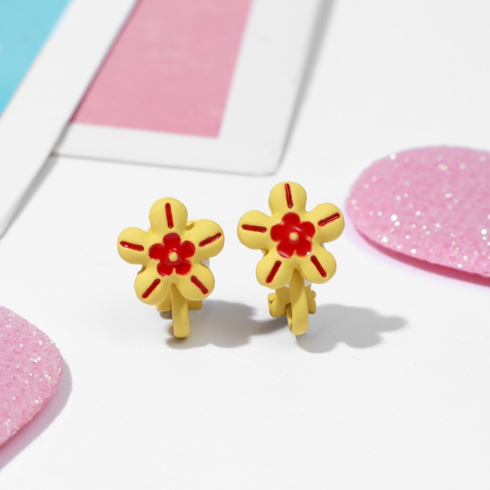 Серьги-клипсы детские «Выбражулька» цветочки, красно-жёлтые