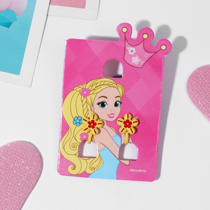 Серьги-клипсы детские «Выбражулька» цветочки, красно-жёлтые — Характеристики