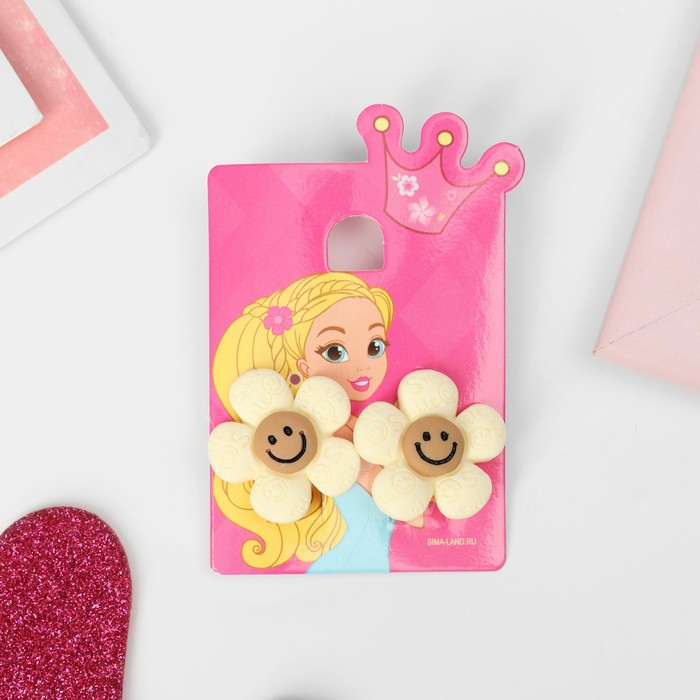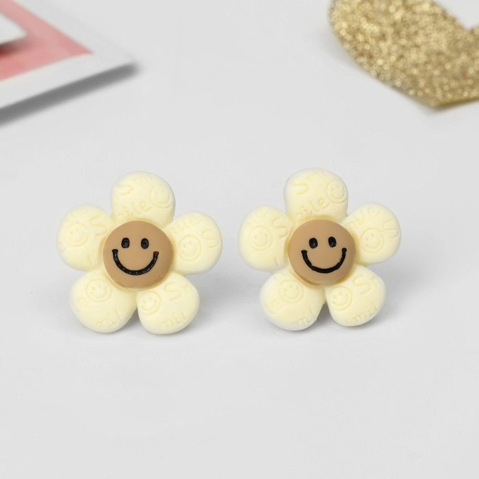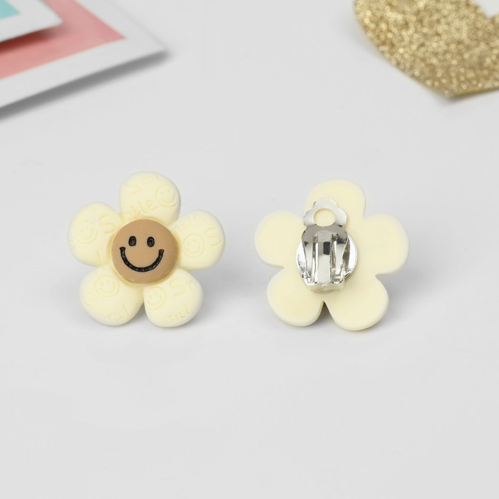 Серьги-клипсы детские «Выбражулька» цветок смайл, бежево-коричневые